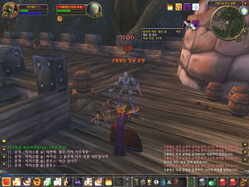 우선 떠돌아 다니는 유령이 저주를 거는 것인데.. 저 저주에 걸리게 되면 자신의 주위에 유령들이 자꾸 달려 들게 된다. 한 대 때리면 죽기는 하지만 여러마리가 몰리면 법사계열 클래스에게는 난감한 저주이다. 처음에 유령들이 나타나 계속 공격하길래 상당히 당황해하며 진행을 했던 기억이.. 왜 나한테만 오는거야~~하면서..^^;;;