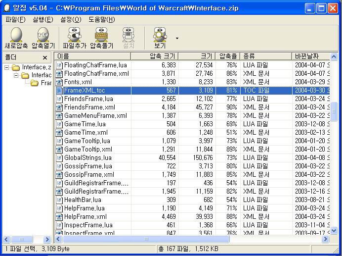 아래 그림처럼 FrameXML파일을 압축을 푼다.