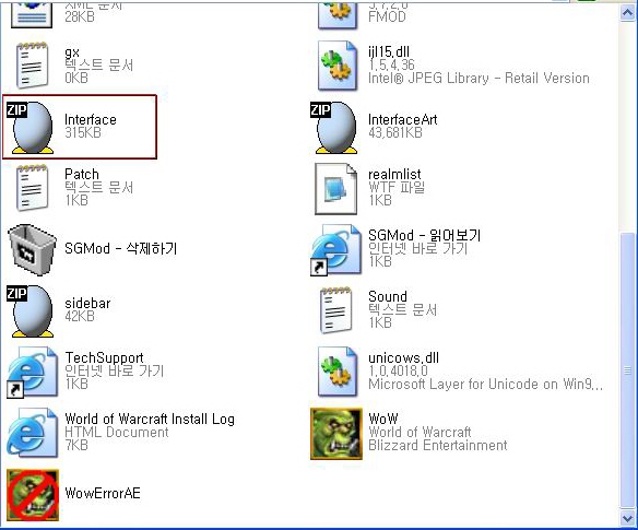 4. 와우가설치된 폴더에 존재하는 interface.zip이란 압축파일을 찾는다!