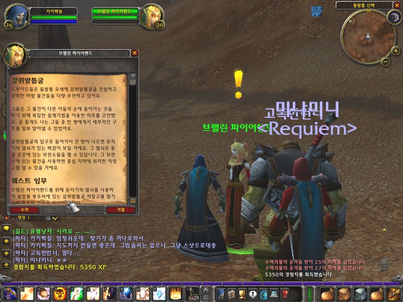 갈퀴발톱굴 퀘스트는 돌발톱 봉우리로 올라가는 길에 있는 이쁘장하게 생긴 브랠린 파이어핸드란 여자 앨프에게 받을 수 있다. ^0^ 이뽀이뽀~ 물론 처음부터 이런 퀘스트를 주면 좋겠지만.. 그렇게 만만하지는 않아용~ 브랠린 파이어핸드에게 처음에는 세나리우스의 유산 퀘스트를 두 번째로 오르다누스 퀘스트를 완료해야 갈퀴발톱굴 퀘스트를 받을 수 있다.
