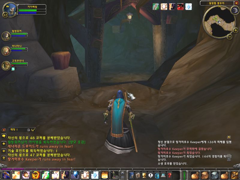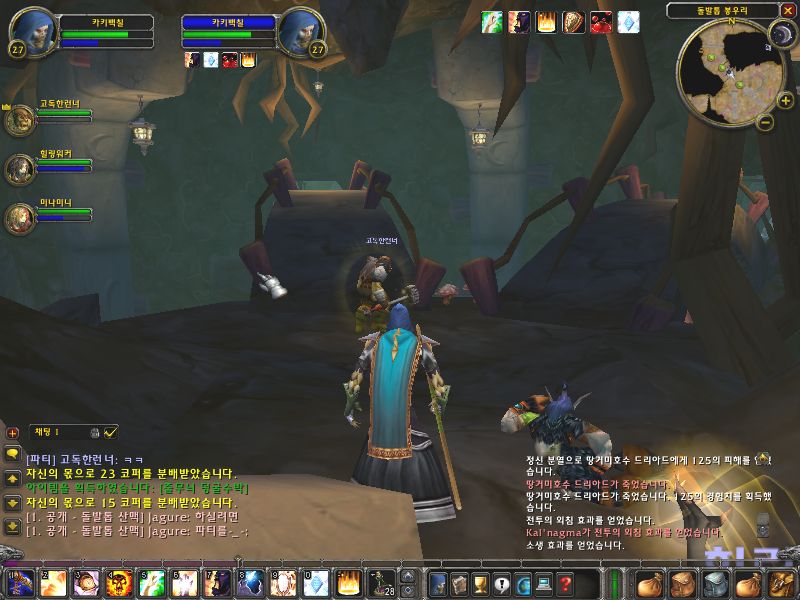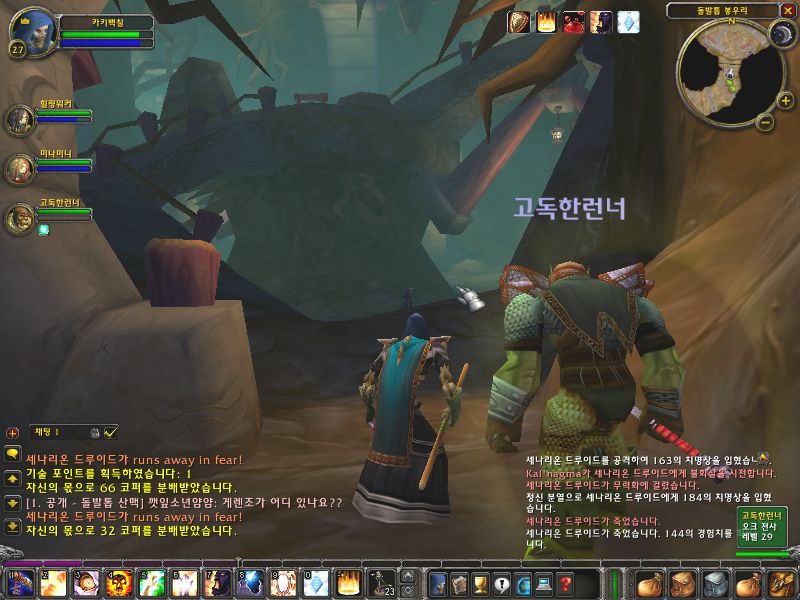 입구의 드루이드와 순찰 병력을 처리하고 동굴로 내려간다. 끝에가면 입구에 또 2마리가 대기하고 있고 순찰 병력이 왔다 갔다 한다. 순찰 병력을 피해서 입구에 2마리를 풀링해서 처리하고 그 옆에 있는 문지기의 열쇠를 얻도록 한다. 열쇠를 얻은 후 길을 따라 내려가자.. 내려가자.