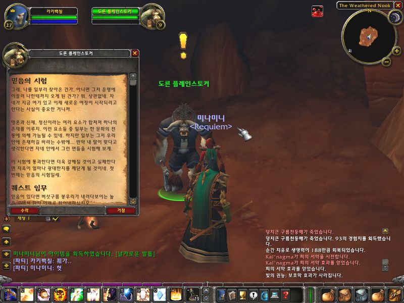 이제는 보상받으러 다녀야 할 시간..여기 저기 보상을 다 받았다. 하지만, 아직도 렙업을 못하고 있는.. 결국 렙업을 위해 운명의 복수를 하기로 마음먹고 톱니항에 들려 레드리프 퀘스트를 받은 후 운명의 복수를 하러갈 파티를 모집하였다. 파티의 구성이 너무 좋아서인지 단한번에 차를가의 심장을 얻을 수 있었다. 그리고 그 다음날 레드리프를 완료하면서 렙업을..ㅜㅜ 정말 렙업하기가 어렵다..