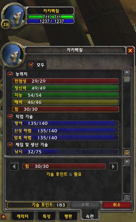 소생 4레벨, 순간 치유 3레벨, 마나 연소 1레벨, 어둠의 권능 : 고통 4레벨
