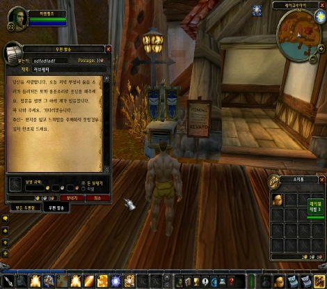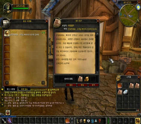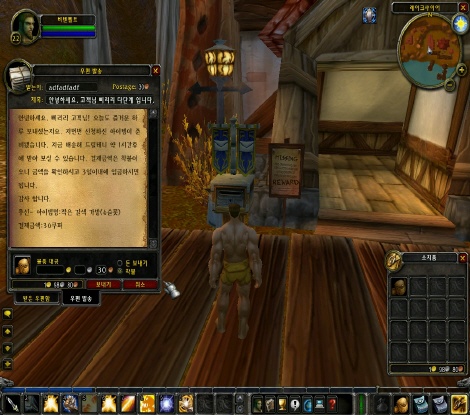 소포: 편지를 작성하고 아래쪽 첨부화면에 아이템과 골드를 추가할 수 있다. 아이템은 한번에 하나씩 발송가능하다. 수신자는 30일동안 첨부물 미회수시 반송된다.