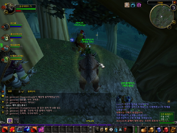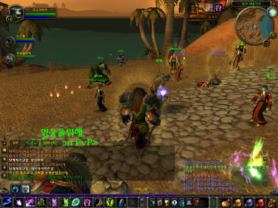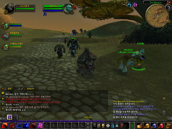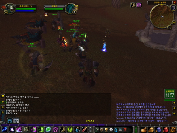 ▲돌발톱에 퀘스트하러 갔다가 호드진영 분들이 얼라이언스에게 죽음을 당했다는 소식을 듣고 모인 플레이어들. 얼라이언스 사람들을 찾다가 NPC를 공격하는 장면.
