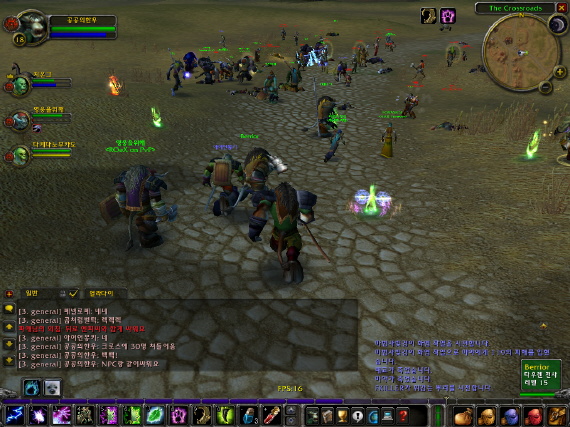 ▲많은수의 얼라이언스들이 다시 톱니항을 점령하고 크로스로드로 진격! 역시 단합잘되는 호드들이 어려움속에서 크로스로스방어성공~