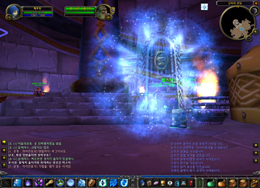 ▶마법사 포탈 트레이너와 포탈마법을 사용한 장면. 포탈 너머로 아이언포지가 보인다