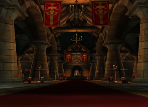 문을 지키는 적들을 유유히 물리치고나서 열쇠를 문에 꽂았습니다. 무거워보이는 문이 쇳소리를 내며 열리는 순간 보이는 것은, 무릎을 꿇고 있는 많은 광신도들과 저 멀리 정면에 있는 사령관 모그레인이었습니다.