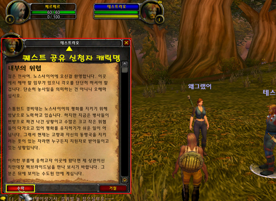 ▲퀘스트 공유를 신청 받은 페르페르. 클릭만 하면 퀘스트받기 완료!