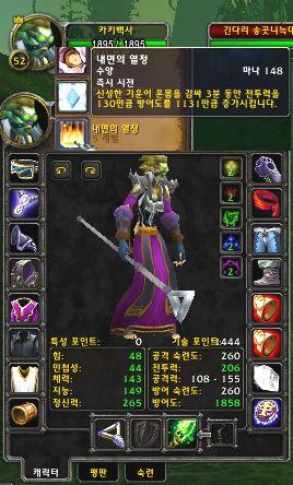 이렇게해서 카키백사가 사용하는 특성을 알아 보았습니다. 약간 길어 졌내요. 위와 같은 특성을 찍었을 경우 혼자서 사냥하는데 크게 무리가 없더군요.. 한가지 아쉬운 점은 역시나 정신분열의 시전시간이 생겼다는..ㅜㅜ 즉시 시전일 때가 좋았는뎅..흑흑..