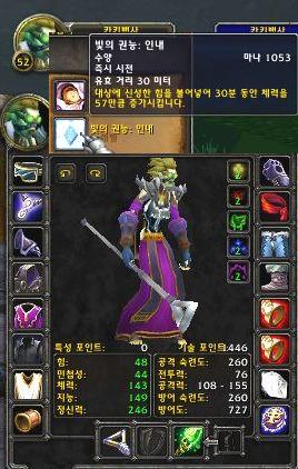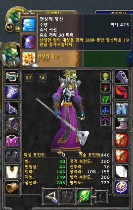 암흑은 특성 포인트가 부족한 관계로 많이 찍지는 못했는데 정신의 덧은 정말 마나 재생에 있어서 없어서는 않될 특성이더군요 그리고 어둠의권능:고통 연마..정말 강추입니다~^^ 어떤 것인지 보도록 하죠