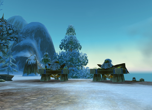 사람이 없으니 뭘 물어볼 수도 없고 해서, 다시 안내인을 쫄래쫄래 미끌미끌 철푸덕 거리며 따라갔습니다. 이번에 도착한 곳은, 그리핀을 타고 아이언 포지에서 저습지쪽으로 날아가다 보면 발견할 수 있는 비행장입니다. 역시나 고소공포증이 있으신 분들에겐 안타깝게도, 뛰어내려야 합니다. -ㅅ-/