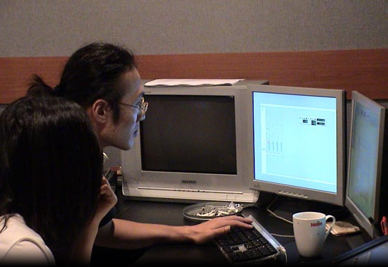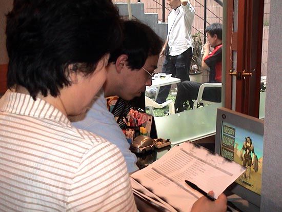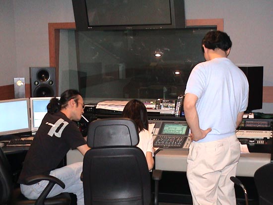 ▶ 무사이스튜디오. 녹음 전 캐릭터에 대한 논의를 진행 중이다. 좌측이 더빙 총책임을 맡고 있는 이인욱PD |