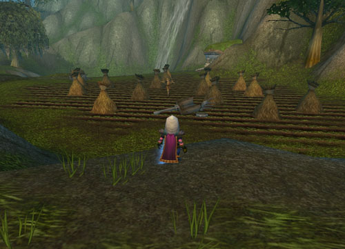 수확이 끝난 밭이 보입니다. 그런데 여전히 조용하고, 밭에도 풀들이 나 있는 것을 보아 보살피지 않은지 오래인 것 같습니다. 다른 길로 가보니 역시나 문이 닫힌 건물과 활 쏘는 과녁, 검술 연습용 더미가 보이네요. 역시나 얻어맞는 역인 더미 답게 심술궂은 표정입니다. 에구 기분나빠라.