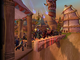 또한 이미 분쟁이 진행되고 있는 지역을 설정하여 플레이어들이 이러한 분쟁상황에 쉽게 휘말릴 수 있도록 만들었다. 예를 들어 힐스브레드 구릉지에는 인간(얼라이언스)과 언데드(호드)의 마을이 모두 존재한다. 언데드 마을에 준비되 있는 다양한 퀘스트들은 인간 마을에 가서 인간 농부를 해치우라는 내용을 담고 있다. 이러한 방법을 통해 플레이어들은 두 진영간의 전쟁이 아직 격하게 진행되고 있다는 사실을 경험하게 된다. |