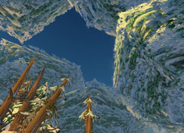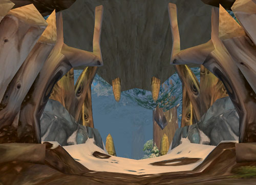 이제 다시 여명의 설원을 구경하기 위해 산양 P군 1호를 타고 나무구렁요새를 통과하여 아직까지 가보지 않은 남은 한 길을 통과합니다. 저기 출구가 보이네요. 자, 슬슬 따뜻한 옷으로 갈아입고(P군 1호는 원체 따뜻한 옷이니까 괜찮지?), 밖으로 나가봅니다.