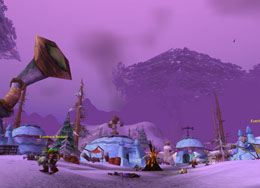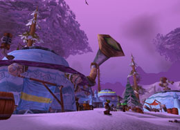이 곳은 고블린이 운영하는 마을로, 호드와 얼라이언스 두 진영 다 이용이 가능한 곳으로, 패치 첫날부터 모험심 강한 여행자들이 모여 전쟁이 일어난 장소이기도 합니다. 여관도 있고 물건 파는 상인들도 있으니 부족한 것은 거의 없습니다. 또 와이번과 그리폰도 있지요. 에버룩의 여관에 머물기로 하고 산양 P군 1호를 타고 다시 여명의 설원 탐사를 나섰습니다.