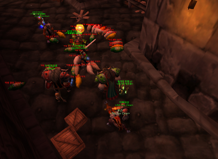 얼마나 갔을까 TAB키(가까운 적 타겟으로 잡기)를 눌러도 잡히지 않는 작은 벌레들이 우글우글 밀려 나왔다. 그 순간 닫혀지는 문! 파티가 철창을 앞에 두고 갈라지는 일이 벌어졌다. 철창 건너편으로는 힐도 안된다. 때려지지도 않는다. 공격마법도 안된다! 환장한다! 하지만 작은 벌레들은 50대 후반의 높은 레벨의 공격력에 비해 빈약한 체력탓인지 몇대만 때려도 죽을 정도로 나약하기만 했다.