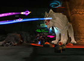새끼들을 광역마법으로 간단하게 처치하고 6번째 네임드 늑대 "할라콘"을 처치하는데 이 것을 처치하면 갑자기 위에서 무언가 울부짓는 소리가 들리며 할라콘의 남편되는?? ㅡ,.ㅡ;; 7번째 네임드 "기주룰the"가 내려와 공격한다.