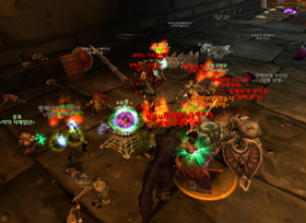 그러다가 내려오는 도중에 오우거들을 처치하고 해골 무더기가 있는곳에 처음 처치했던 "대군주 오모크"의 머리를 거기서 사용하였는데 갑자기 마법진들이 주변에 생기면서 주기적으로 오우거들이 소환되기 시작한다.
