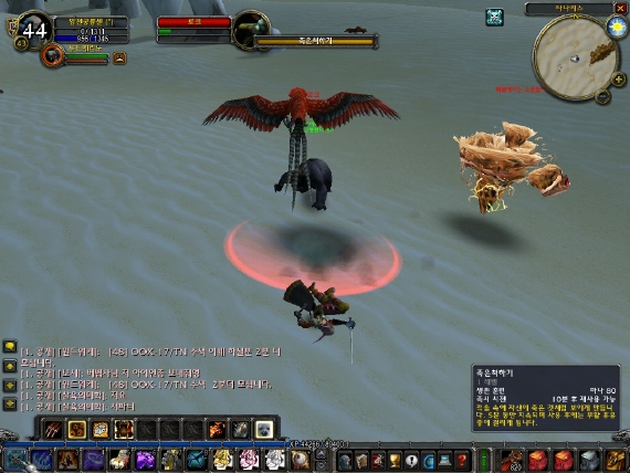 죽은척하기.. 얍삽하긴하지만 살기위해 어쩌겠습니까? 기능은 5분동안 죽은척 할 수 있으며 딜레이는 10분입니다.. 그렇다고 5분동안 누워있는라는 얘기는 아니구요. 몹이 저~ 멀리 갔다싶으면 이동키를 눌러 사르륵 이동하시면 됩니다+_+; (허나, 사용후에는 후유증이 있기마련.. 그러나 뛰어오는것보단 났겠지요?) 이 기술도 아직 문제점이 많습니다. 맞는 중에 이 기술을 쓰고나서.. 아~살았구나 하는순간에 죽은 적이 몇번이나 있었는지 모르겠네요.. 운인지 버그인지 몰라도 죽은척해도 치는몹이 있답니다.