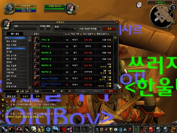 나이트 엘프는 활, 드워프는 총. 불변의 법칙입니다.. 총도 중후반렙대까지 꾸준한 분포와 레어템들이 많이 올라와 있었습니다. 물론 후반 총들의 부족현상과 고가현상이 일어나고 있었습니다..
