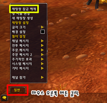 있는 전투창 또한 똑같은 방법으로 채팅창 잠금 해제를 클릭하자.