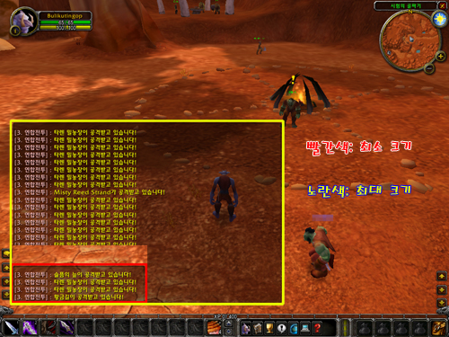 채팅창의 끝 부분에 마우스 포인트를 끌어 놓고 왼쪽 마우스를 클릭한 상태에서 사이즈를 늘였다 줄였다할 수 있다. 물론 최소 크기와 최대 크기는 정해져 있다. -0-;;