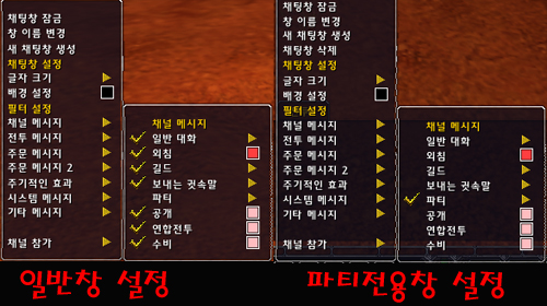 일반 채팅이나 길드, 파티 채팅은 접속을 종료한 후에도 설정이 저장 되서 재접속 후에도 전에 설정한대로 채팅창을 사용할 수 있었다. 하지만 채널 채팅에 해당하는 공개 채팅은 새로 만든 채팅창에 설정해 놓고 재접속을 하면 양쪽창에 모두 출력되는 문제가 있었다.