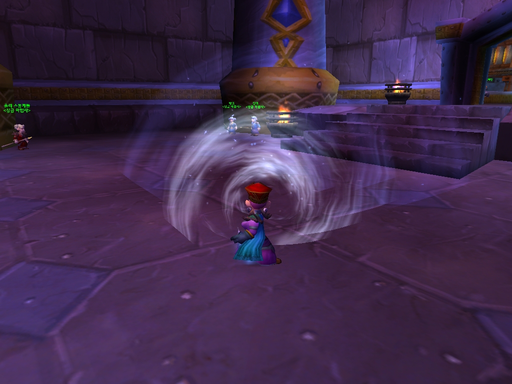 몹들의 발이 묶였으면 이제 눈보라를 사용해야 한다. 눈보라는 범위가 넓고 데미지도 매우 크지만 체널링 주문이므로 다음과 같은 요령으로 사용한다.