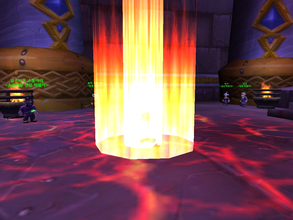 불기둥은 시전시간이 꽤 길지만 채널링을 요구하지 않으며 데미지가 큰 편이다. 보통 탱커가 붙잡고 있는 몹들에게 불기둥을 시전한 뒤 마법사에게 다가오는 적에게 냉기 돌풍을 시전하고 얼음 회오리로 발을 묶는 전법이 유용하다.