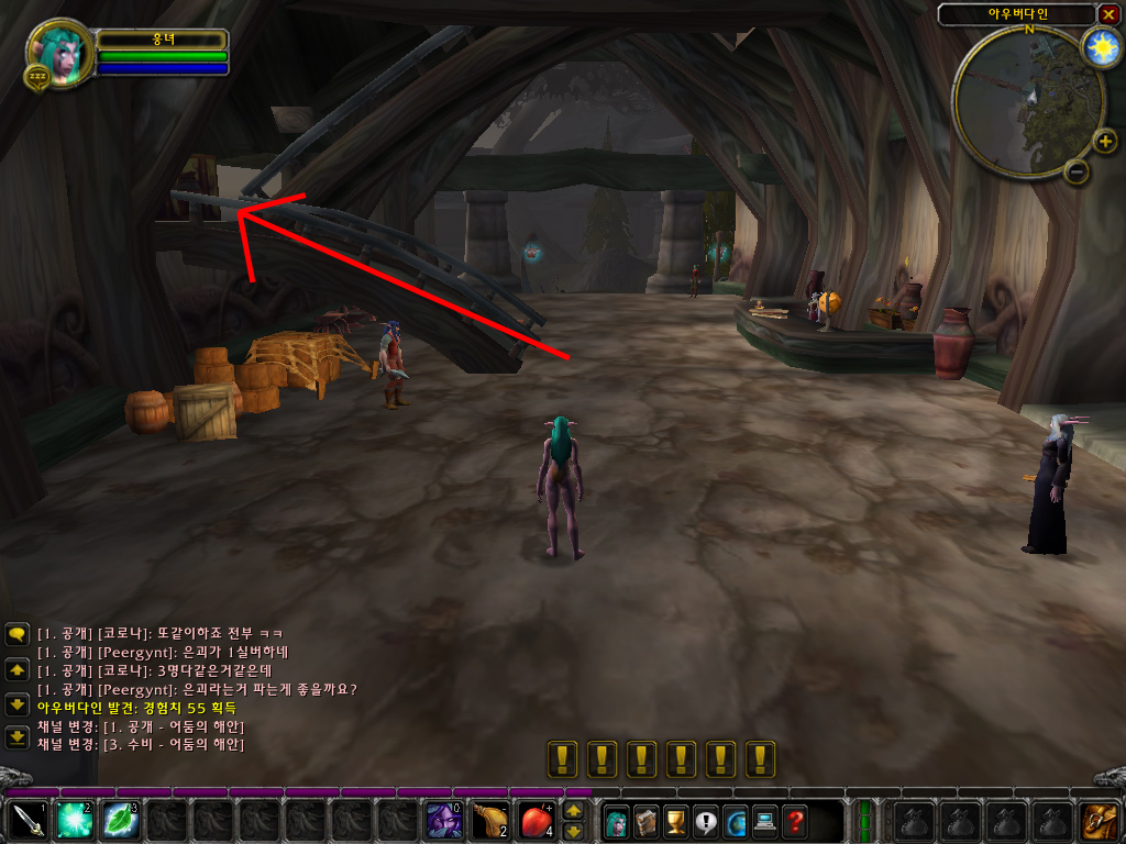 3) 남대문같이 생긴 거대한 건물이 보입니다. 나이트엘프들의 수도인 다르나서스에 무사히 도착했습니다.
