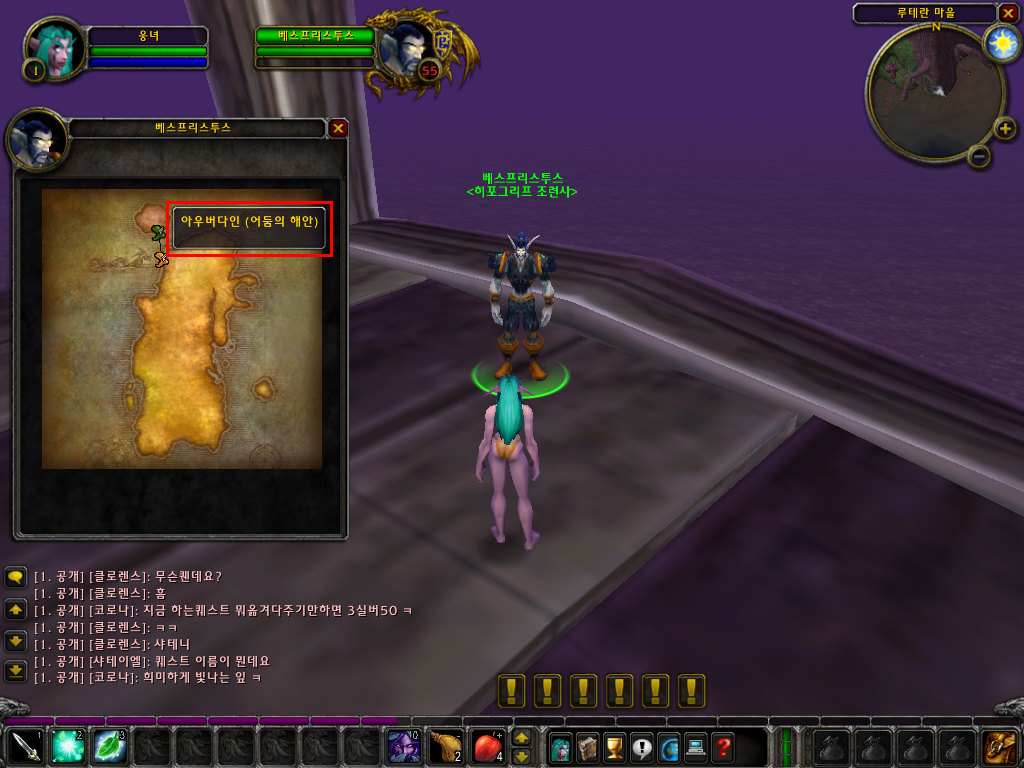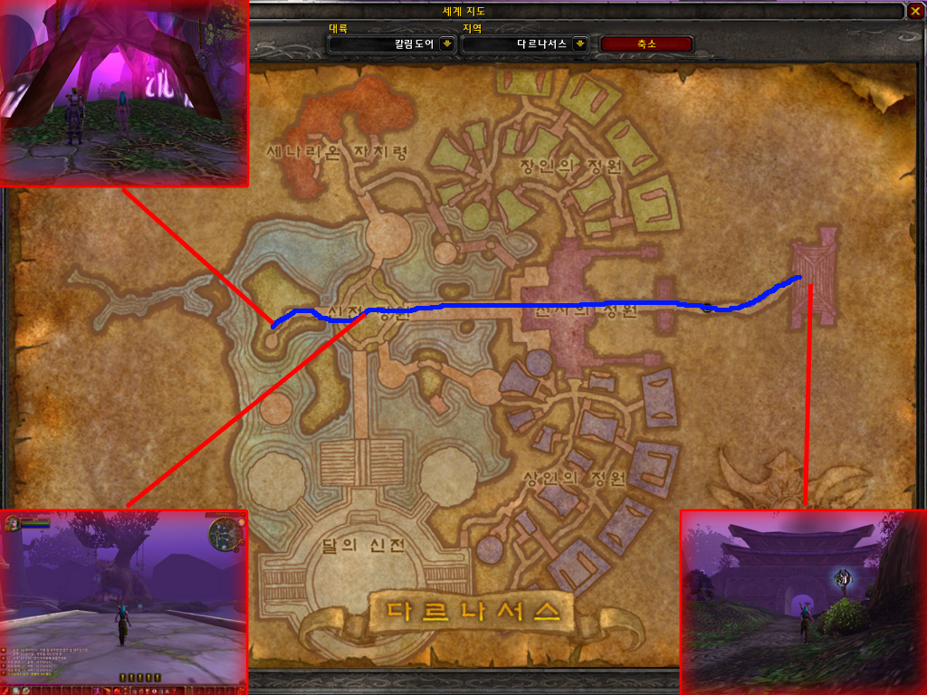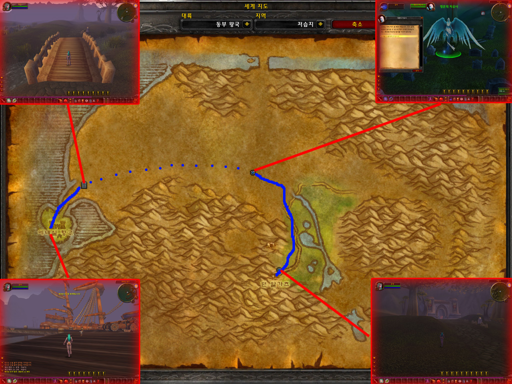 레벨 1 나이트엘프 플레이어들이 다른 종족의 시작지점으로 이동하는 방법을 소개합니다.