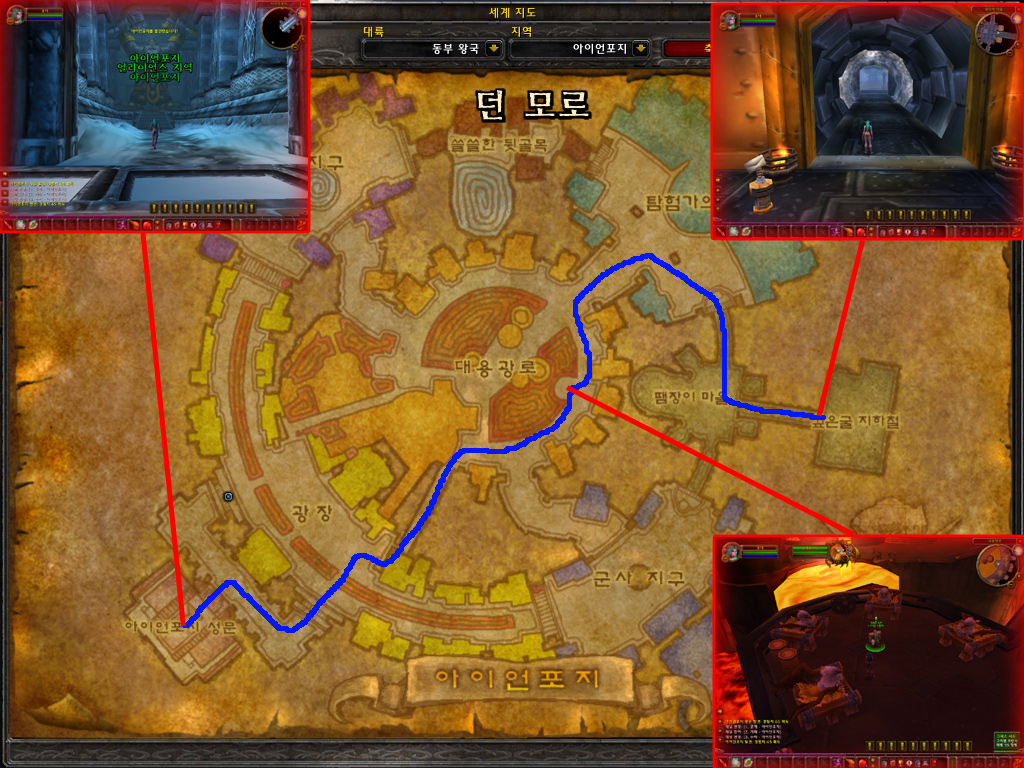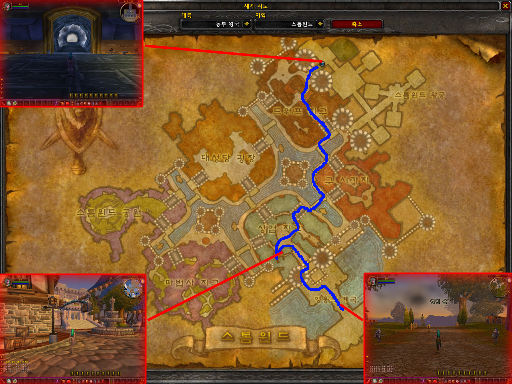 1) 스톰윈드 지하철역에서 빠져나오면 드워프 지구입니다. 길을 따라 상업지구까지 이동합니다.