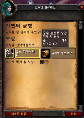 이 퀘스트를 받고 다시 관리인 일사레인에게 돌아가 `자연의 균형`퀘스트를 마무리 짓고 보상을 받도록 하자.