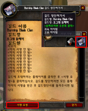 길드를 창설하기 위해선 10실버가 소요되며 9명의 서명을 받아야 하는 조건을 충족시켜줘야 길드 창설이 가능하다.