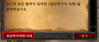 다서명 요청을 받은 플레이어는 좌측 하단에 보이는 창단허가서에 서명 버튼을 눌러 길드 창단에 서명할 수 있다(주의: 길드 창단에는 계정당 하나의 길드에만 서명할 수 있다. 단, 서버다 다르다면 상관 없다). 서명이 모두 완료되면 길드 사무관에게 돌아가 창단허가서를 제출하면 된다.