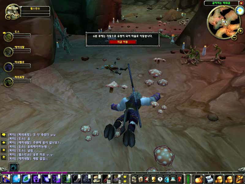 99년산 와인을 얻은 일행들은 북쪽으로 전진하면서 통곡의 정수와 불뱀꽃을 얻어나갔다. 그리고 마침내 다른 지형으로 이동 할 수 있는 포탈앞에 도착하기에 이르렀는데..