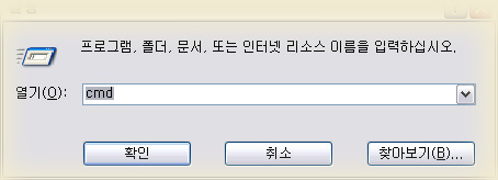 실행 창이 열렸으면 CMD라고 입력한 뒤 엔터 버튼을 누른다.