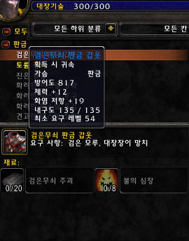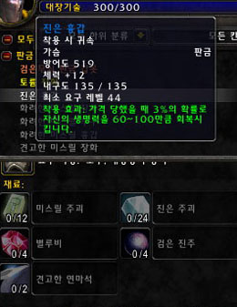 난앙마야: 채광은 쉬웠는데 문제는 대장이었어요. 며칠씩은 렙업도 접고 열씸히 광질해서 재료 모아서 대장퀘에 다 쓰고 심지어는 그것도 부족해서 경매로 전부다 사들이기도 했어요. 마지막 260에서는 도면을 못구해서 길드분들 득하면 강제로 뺐었지요-0-