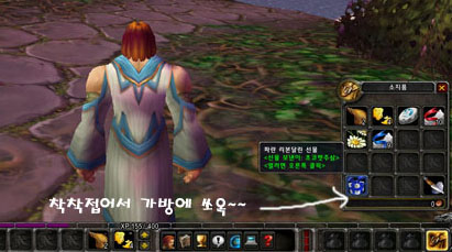 다음으로는 오늘의 메인상품인 초코렛이 필요하지만 그것보다는 좀 더 때깔이 좋아 보이는 사탕을 선물하기로 하자. 사탕은 별똥별 마을의 식료품 상인에게 구할 수 있다.(이것을 구하기 위해서는 그동안 WOW를 열심히 해왔어야만 한다)
