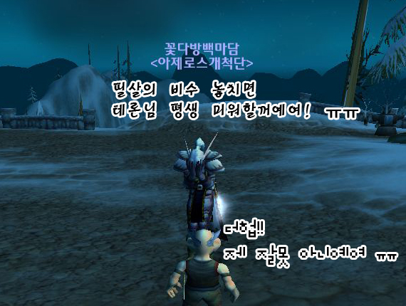 꽃다방백마담 : 흠.. 전에 친구들끼리 와우 하기전에 다른 온라인게임을 하면서 꽃다방김양 이런식으로 아이디를 만들어서활동했어요. 사실 별뜻은 없구요. 튀어보이고 잼있어 보여서 이런 아이디를 만든거예여 ^^