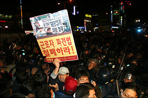 ▲ 현실과는 달리 오그리마의 스랄은 모든 직원들에게 차별 없이 일할 수 있는 근로조건을 만들었다. 사진은 비정규정 근로자들의 시위장면 |