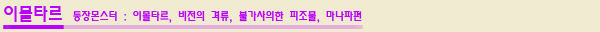 "이몰타르"는 생긴것과 비슷하게 "이몰타르의 눈"을 소환하여 자신의 머리 위에 떨어뜨린다. 물리대미지가 강하기 때문에 천 계열은 조심하는것이 좋다. 그렇기 때문에 눈을 소환 할 때 먼저 처리하는 것이 좋다. (생긴건 괴수 + 괴물눈이다...;;)