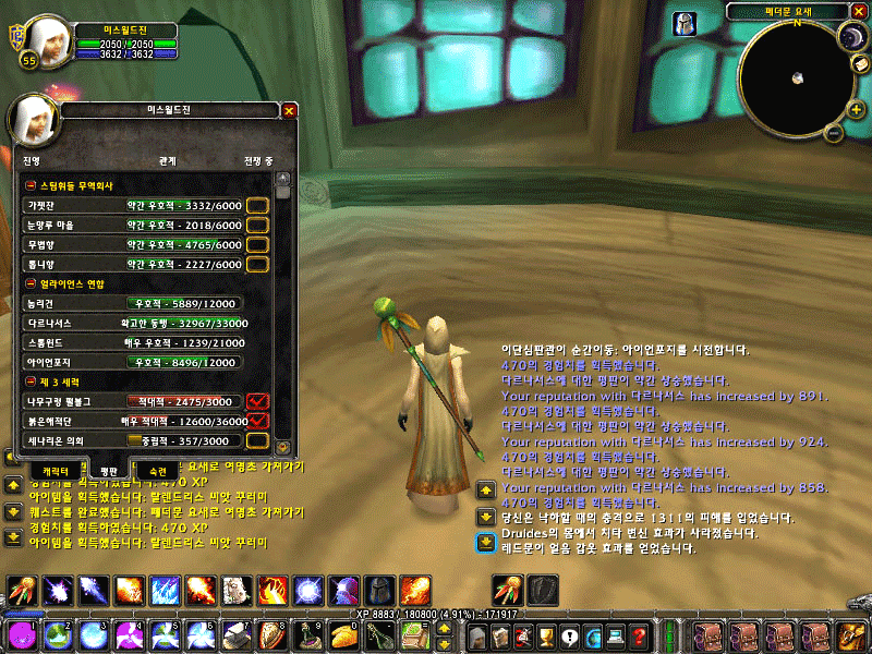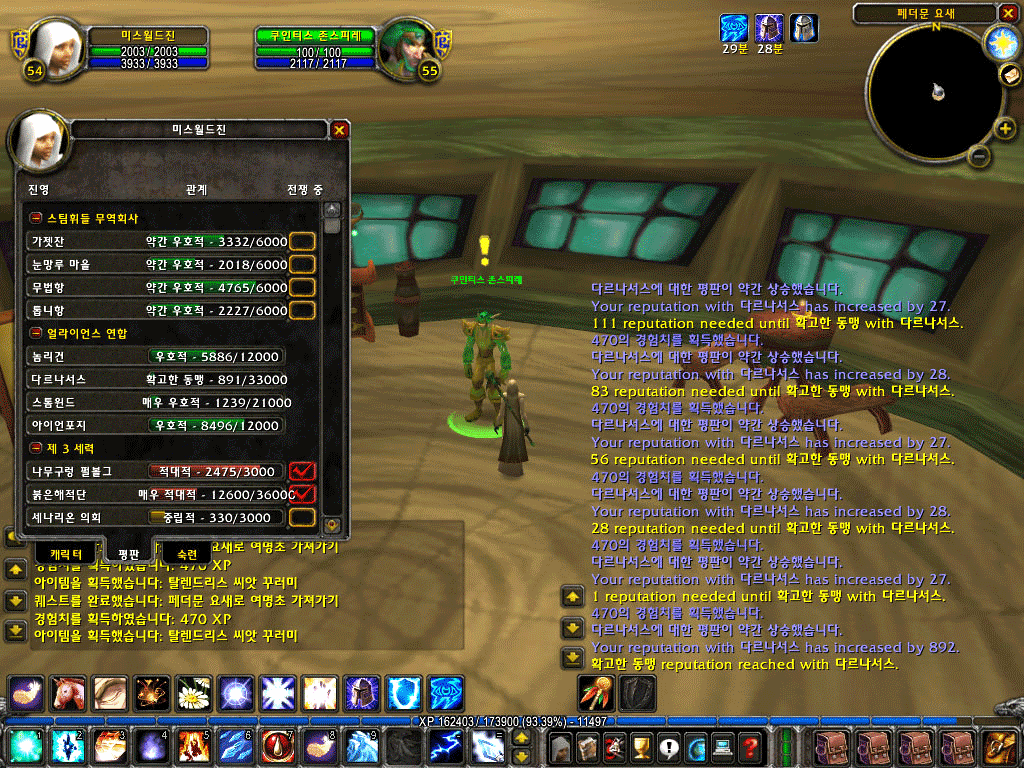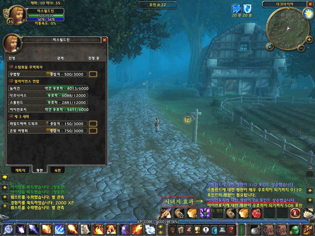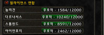※UI 애드온 중에 Reputation이 설치되어 있을 시에 평판게이지를 수치로 보여줍니다 |