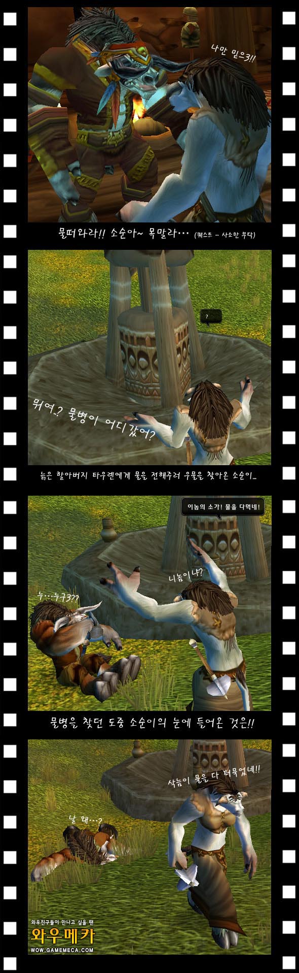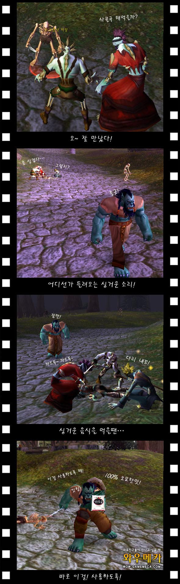 와우메카에서 4컷 만화를 통해 재미있는 상황을 연출해 봤습니다. 오늘은 첫 번째 이야기로 다소 심각한 우울증과 짜증을 유발 할 수 있지만 넓은 아량으로 마지막까지 감상해 주시기 바랍니다. 이 이야기들은 아무런 감동과 교훈적인 내용이 없으며 굳이 의미를 찾고 싶으신 분들이 계신다면 간단한 리플을 통해 의견 들을 교환 하시기 바랍니다. 자, 이제 이야기를 시작 하겠습니다.