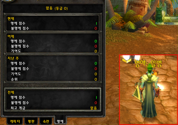 명예 시스템이 구현된 첫날 답게 평소에 즐기던 인스 던전은 미루어 놓고 전쟁이 많은 힐스브래드,아라시 고원과같은 곳으로 적들을 찾아다녔다. 그 덕분에 인스 던전에 가고 싶어하는 유저들이 없어 인스 던전을 못가는 상황이 발생되었다.