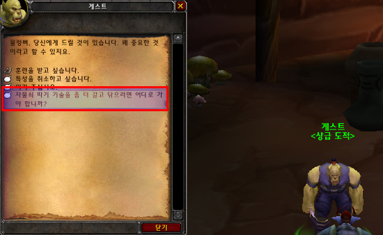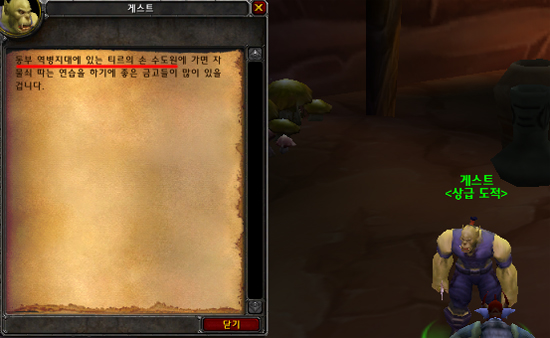 ■ 상급 도적이 플레이어의 자물쇠따기 숙련도에 따라 적당한 수련 장소를 알려주게 됩니다.