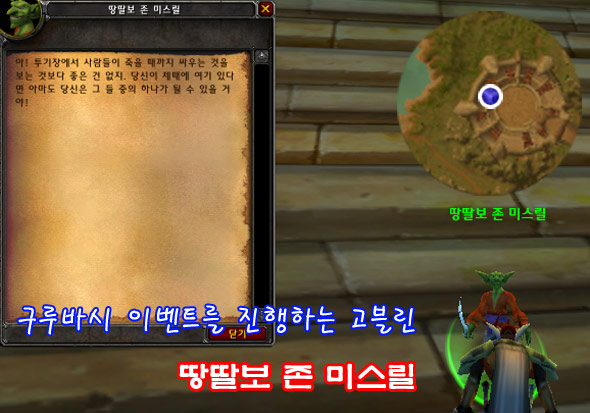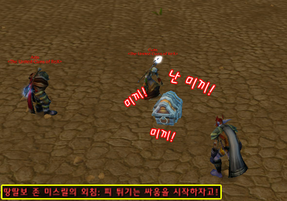 땅달보 존 미스릴은 구루바시 한 가운데 상자를 내려놓고, 싸우라고 한다! 그것도 피튀기게! 플레이어가 무슨 노예검투사도 아니고... -_-;;