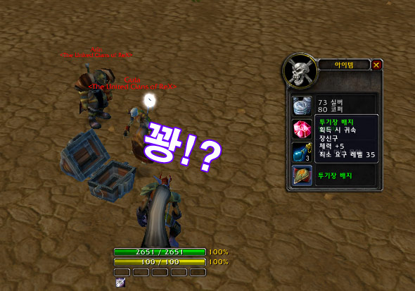 고정적으로 무조건 나온다는 투기장 배지와 약간의 돈, 별루비, 마나 물약 3개.. 그렇다. 꽝이다. -_-;; 이런 아이템을 위해서 진영을 무시하고, 플레이어끼리 전투를 붙이는 걸까?
